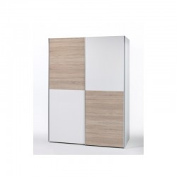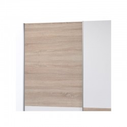 El armario modelo Troy destaca por su capacidad de almacenamiento y por su tamaño para estancias amplias. Está fabricado en melamina de alta calidad disponible en dos colores, roble sonoma combinado con blanco o blanco entero. En su interior consta de de dos baldas interiores y dos barras de colgar, su interior está lacado en color blanco mate. Troy es una opción irresistible para tu dormitorio o vestidor, gracias a sus dos puertas correderas con freno al cierre, resulta mucho más fácil y cómodo para su uso diario.