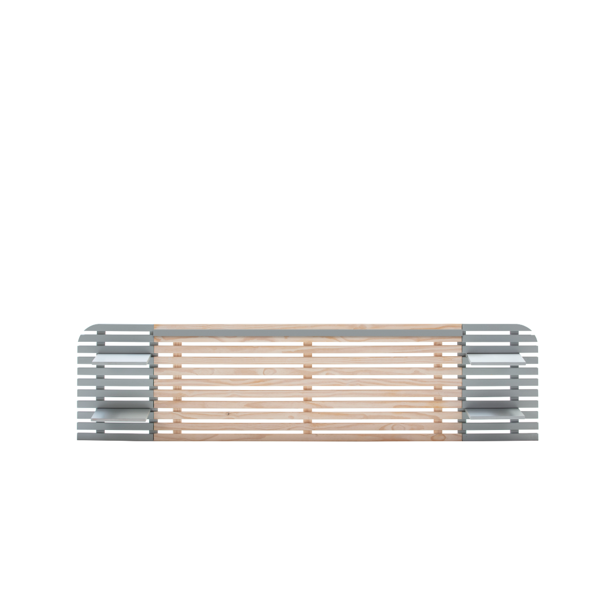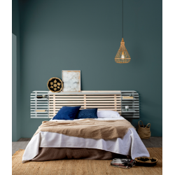 Dama es una gran colección de cabeceros que combina materiales resistentes como la madera de pino maciza y el dm de alta calidad. Es un cabecero compuesto de listones de madera en color gris y natural, además, dentro de su estructura consta de cuatro pequeños estantes en color gris y blanco para colocar cualquier objeto decorativo. Podrás encontrar este cabecero en varios colores distintos para adecuarlo a tu dormitorio.