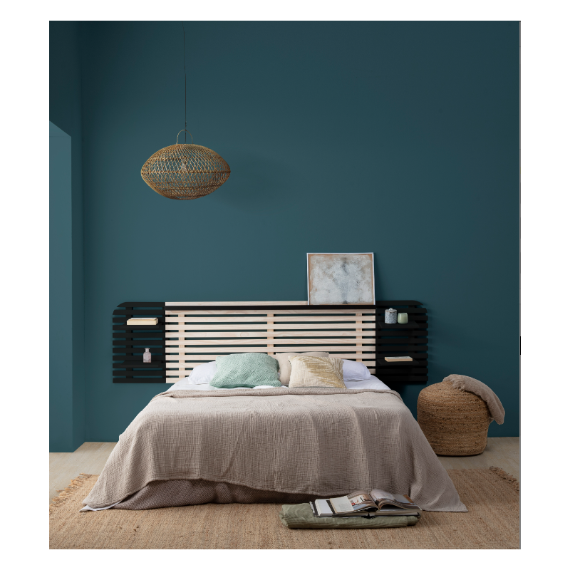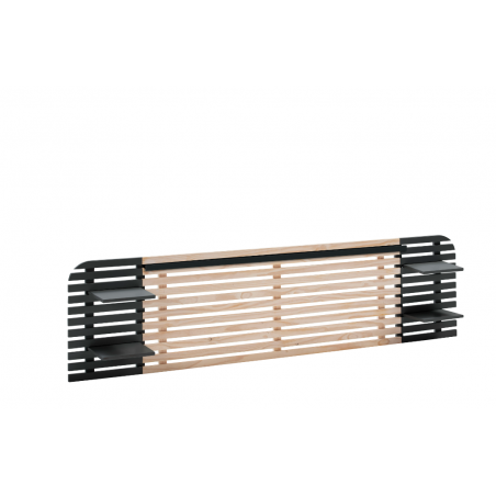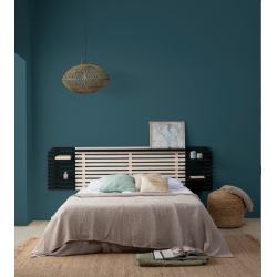 Dama es una gran colección de cabeceros que combina materiales resistentes como la madera de pino maciza y el dm de alta calidad. Es un cabecero compuesto de listones de madera en color negro y natural, además, dentro de su estructura consta de cuatro pequeños estantes para colocar cualquier objeto decorativo. Podrás encontrar este cabecero en varios colores distintos para adecuarlo a tu dormitorio.