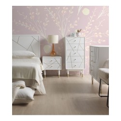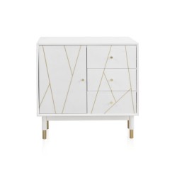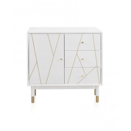 COMODA 3 CAJONES 1PUERTA LACADA EN BLANCO CON FRONTIS DECORADO EN ORO MODELO VEGA 80x40x80