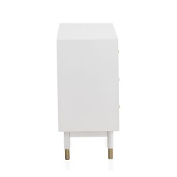 Características más importantes de la Cómoda 3 cajones lacada en blanco con frontis decorados en oro Modelo Vega: