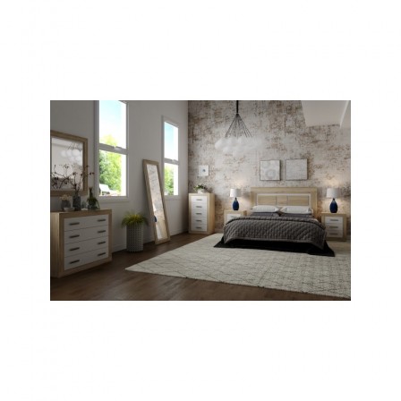 Dentro de todos los componentes del conjunto para dormitorio modelo Danet, se encuentra este precioso sinfonier. El sinfonier Danet se compone de una estructura completa fabricada en melamina de alta calidad, en su diseño encontramos cinco cajones con frente color blanco y tiradores de PVC con acabado metálico, el resto de estructura consta de un acabado en color roble Sonoma, una perfecta combinación de colores en sintonía.