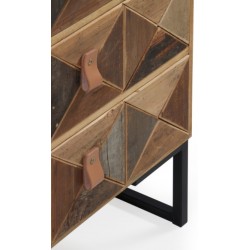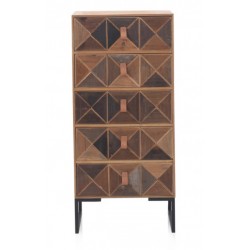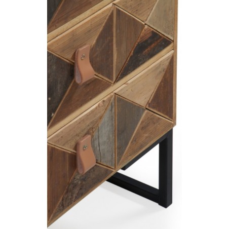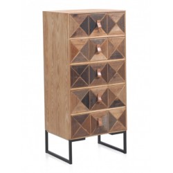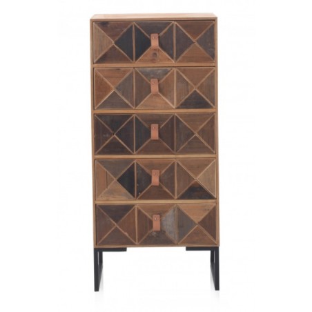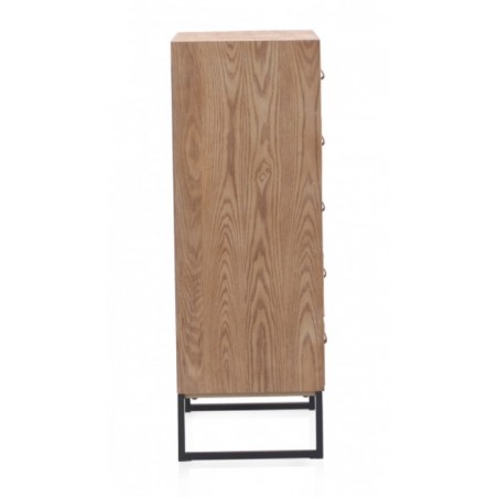 Sinfonier 5 cajones madera de fresno modelo ANNE, es un aparador ideal para decorar salones, dormitorios o cualquier estancia de casa, esta fabricado en madera de fresno reciclada con frentes en diferentes tonalidades, compuesto 5 cajones, tiradores de cuero y base metálica color negro. Un mueble elegantísimo con un sin fin de posibilidades para decorar.