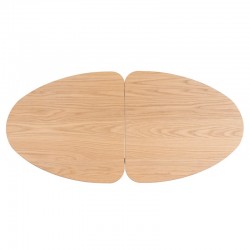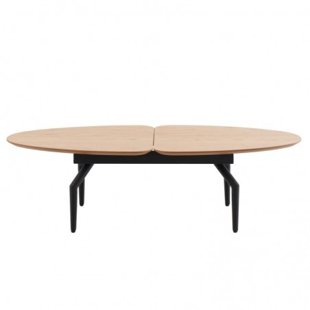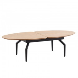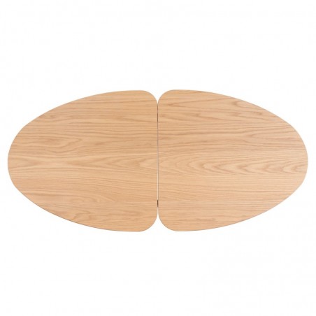 Fredi es una mesa de diseño y calidad pensada especialmente para las decoraciones en tendencia. Se compone de una estructura en acero lacada en color negro y un sobre diseñado en dos hojas ovaladas fabricadas en madera maciza de roble color natural con varias vetas en el mismo tono de madera.