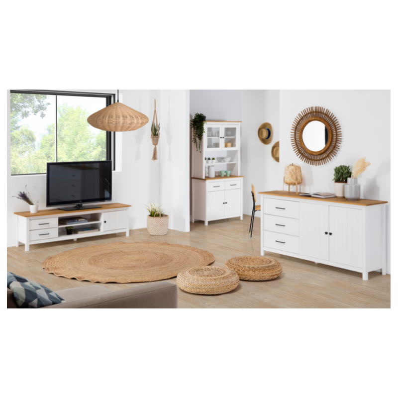 El estilo nórdico e industrial es, y seguirá siendo tendencia en los próximos años, y no es de extrañar ya que sus tonalidades neutras lo hacen realmente atractivo y sencillo de combinar con el resto del mobiliario. El Mueble TV Mira 1 Puerta en Color Blanco es ideal no solo para acomodar tu TV y disfrutar de tus series y películas favoritas, sino también para aprovechar el espacio y mantener el orden en tu salón. Se presenta con un diseño realmente práctico, ya que consta de una puerta, 2 estantes y 2 cajones.