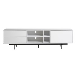 Los muebles de televisión nos aportan grandes ventajas en nuestro día a día. Entre ellas encontramos la fácil instalación que presentan, el toque decorativo que aportan al salón, nos ayudan a mantener el orden, etc. El Mueble TV Modelo Bea de 180 cm en Color Blanco se presenta con un diseño minimalista, que hará realmente fácil combinarlo con el resto del mobiliario de la estancia.