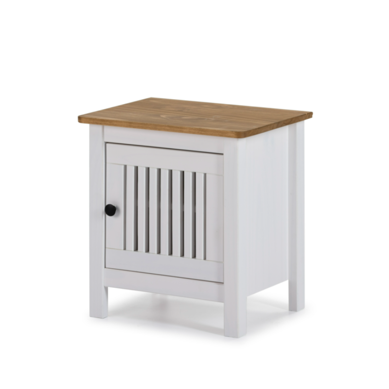Las principales características de la Mesita de Noche Brun 1 Puerta en Color Cera/Blanco son: