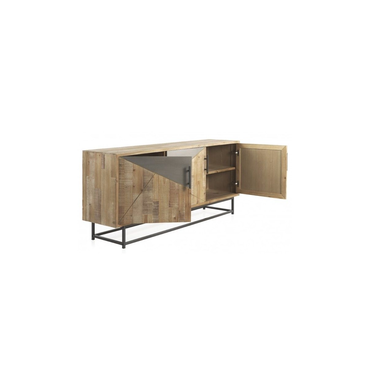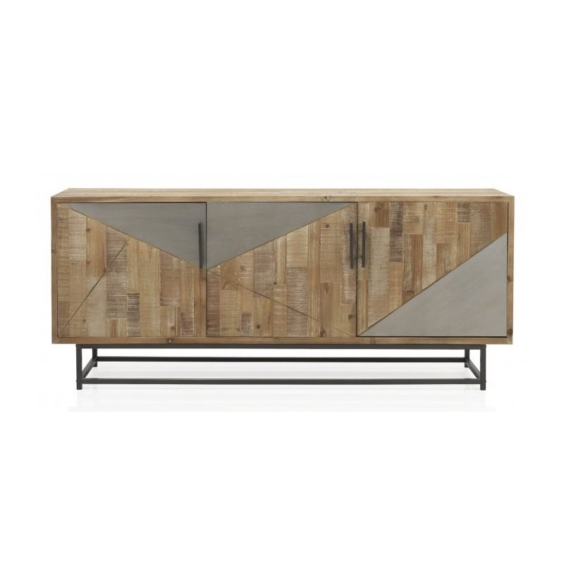 Aparador madera de abeto con base en tubo metálico modelo PIEDRA, un aparador con un estilo único y exclusivo, fabricado en madera de abeto con estructura de hierro y tiradores metálicos, esta compuesto por 3 puertas, un aparador con gran capacidad de almacenaje, donde podrá almacenar un sin fin de cosas, destaca por sus materiales de alta calidad, sin lugar a duda no pasara desapercibido.