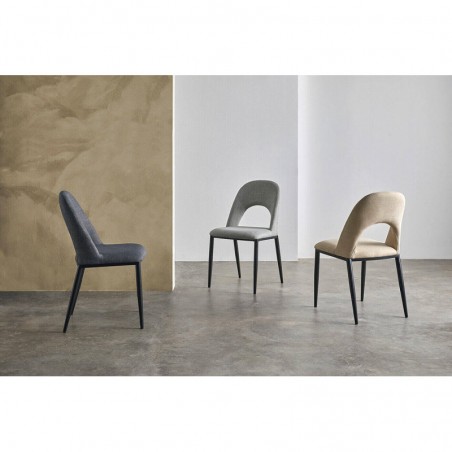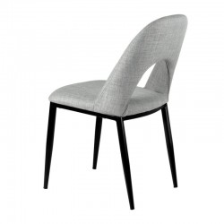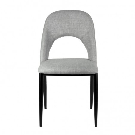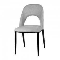 Anik tiene un diseño especial para adaptarse a la comodidad de tu cuerpo, su respaldo curvo y su apertura hará que logres descansar tu espalda de una forma sencilla y cómoda. Se compone de una estructura en madera contrachapada y tapizada en tela de alta calidad, en este caso color gris claro, aunque podrás encontrarla en más colores. Para una mayor resistencia, sus patas están fabricadas en acero lacado en color negro, su combinación de colores te encantará.