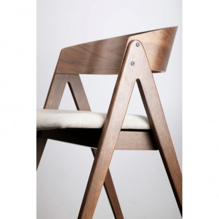 Decoración absoluta proporciona la silla de comedor modelo Arina, se compone de una estructura en madera de nogal barnizada en color natural y un asiento de 26 kg de densidad para que sentarte en él sea una maravilla. Este asiento está relleno de espuma y tapizado en tela color beige de fácil limpieza y con la mejor calidad. Podrás encontrarla en multitud de colores.