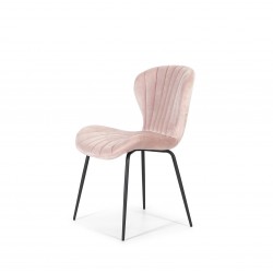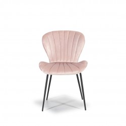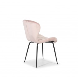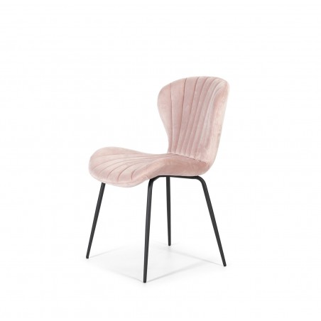La nueva colección de Trend and Color te trae las sillas de comedor modelo DC-541, una variedad de sillas en seis colores diferentes para cada decoración y cada gusto. Es una silla con un espectacular diseño en costuras verticales con asiento y respaldo acolchados en espuma y tapizados en terciopelo, en este caso color rosa, además, consta de una estructura metálica negra que combina a la perfección.