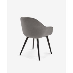 Para grandes mesas, grandes sillas como el modelo Fabo , una silla de comedor que se adapta perfectamente a tu cuerpo y en la que querrás pasarte horas y horas sentado durante todo el día. Se compone de una estructura contrachapada y rellena de espuma, todo esto consta de un gran tapizado en terciopelo color gris que aumenta su calidad. También tiene cuatro resistentes patas fabricadas en acero lacado negro.
