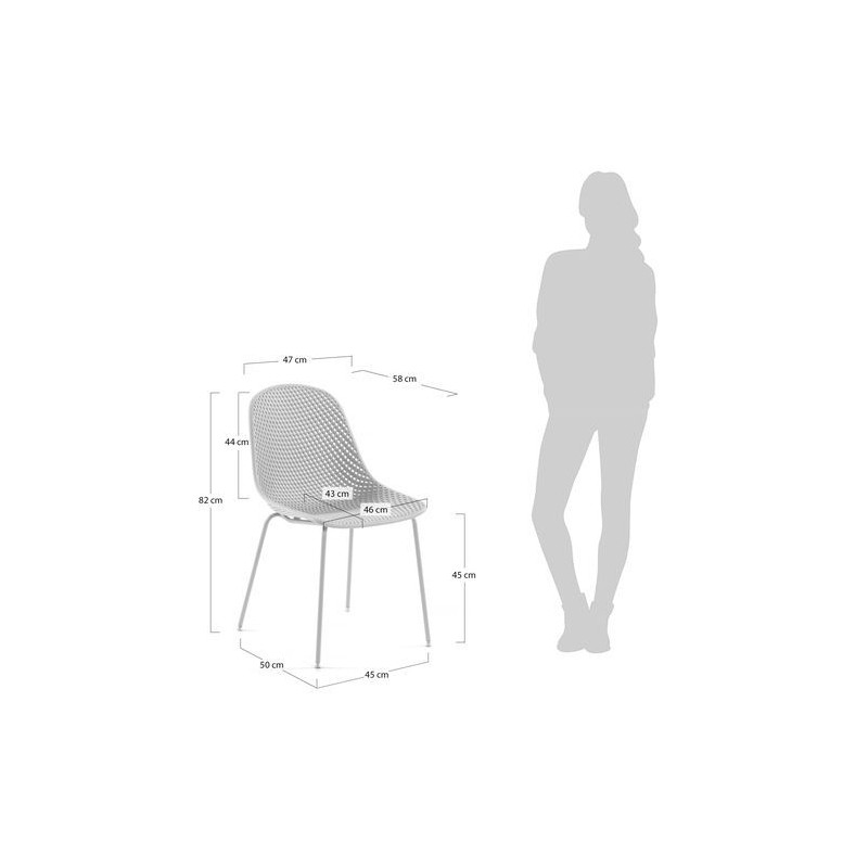 La colección de sillas y taburetes modelo King tiene un diseño polivalente y versátil, en este caso te presentamos la silla de comedor King, con asiento y respaldo fabricados en plástico reciclable color blanco y una estructura en acero lacado en el mismo color. Crea preciosos conjuntos con los artículos de esta colección y consigue la decoración que tanto buscas.