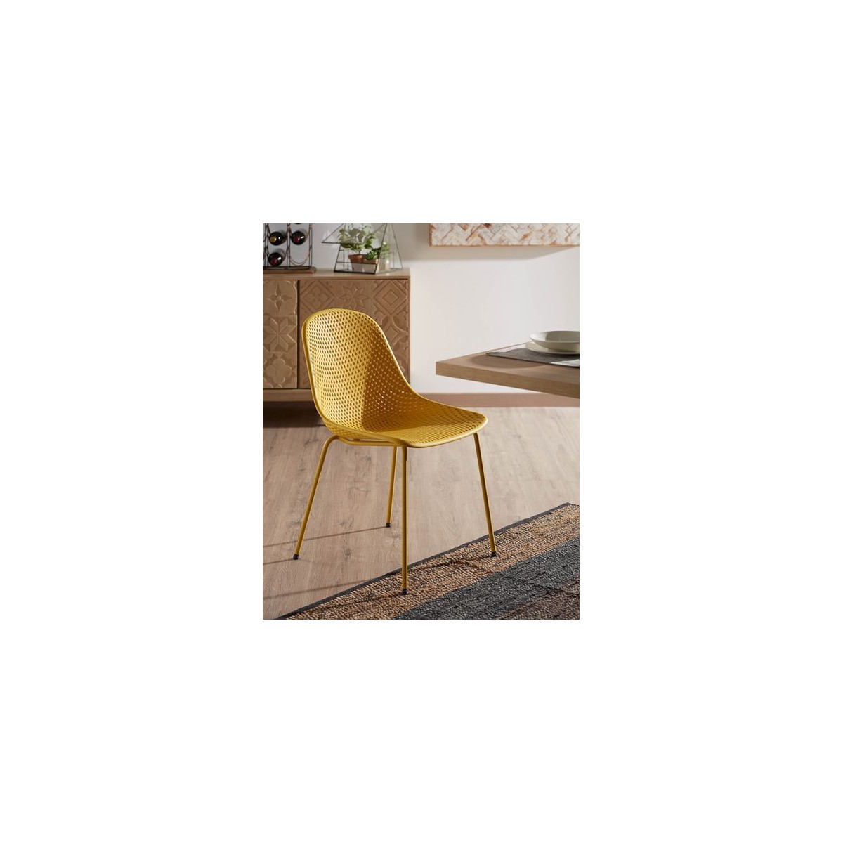 La colección de sillas y taburetes modelo King tiene un diseño polivalente y versátil, en este caso te presentamos la silla de comedor King, con asiento y respaldo fabricados en plástico reciclable color mostaza y una estructura en acero lacado en el mismo color. Crea preciosos conjuntos con los artículos de esta colección y consigue la decoración que tanto buscas.