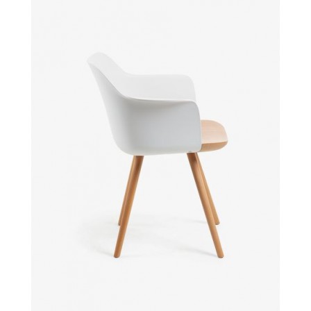 Klass no es una silla cualquiera, es una silla versátil que destaca por su diseño, podrás ubicarla tanto en comedor, cocina, sala de estudio, etc. Se compone de una estructura en líneas redondeadas y fabricada en policarbonato color blanco, también consta de patas y asiento en madera maciza de haya para una mayor resistencia en uso diario. La combinación de materiales y colores de la silla Klass la hace única y especial.