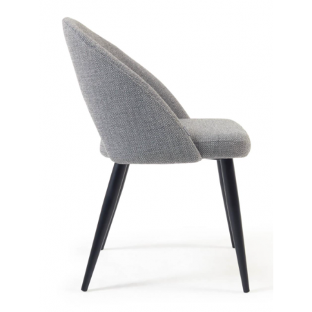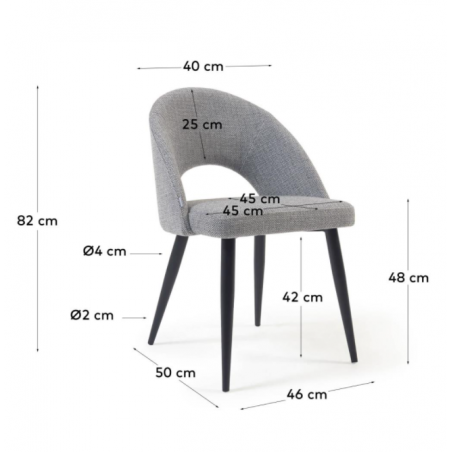 La silla de comedor Maelo se adapta perfectamente a tu cuerpo gracias a su asiento y respaldo ergonómico, por lo que aparte de diseño aportan comodidad y confort a todo el que se siente en ella. Se compone de una estructura acolchada rellena de espuma con un tapizado en tejido color gris claro y cuatro patas metálicas de acero negro.