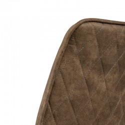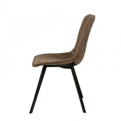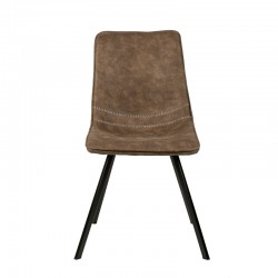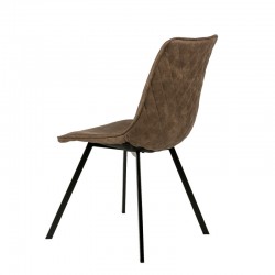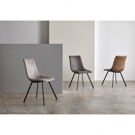 La composición de la silla de comedor modelo Roberta consta de una estructura contrachapada y acolchada por su relleno en espuma de 21 kg de densidad, tapizada en tejido 100% poliéster con efecto cuero acabado en color marrón, aunque podrás encontrarla en dos colores más, gris claro o gris oscuro. Roberta es una silla resistente y duradera gracias en parte a la fabricación de sus cuatro patas cónicas en acero lacado negro, la combinación de materiales que presenta esta silla la hace aguantar hasta un peso de 120 kg.