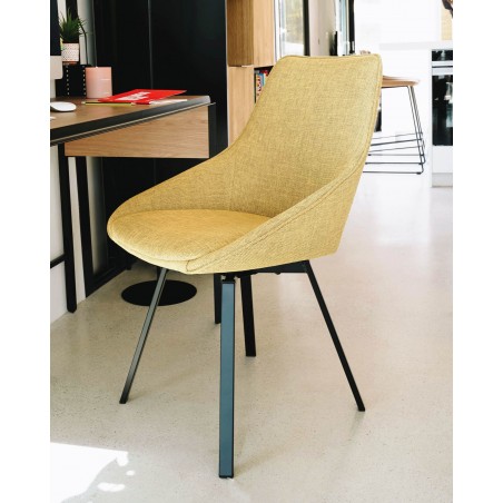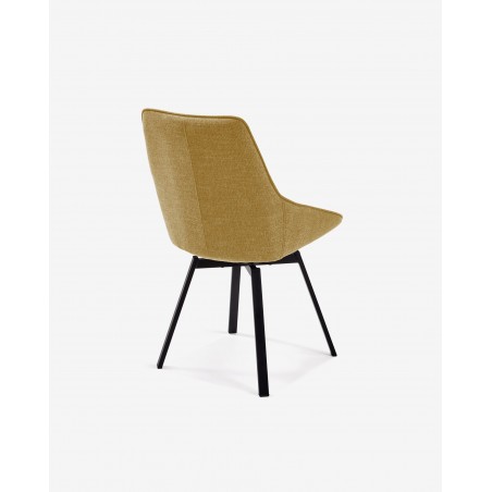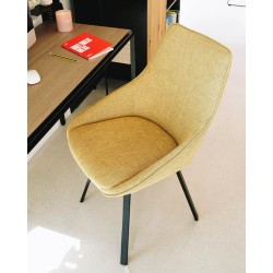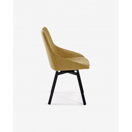 La colección de sillas modelo Jen cuenta con diferentes acabados para poder adaptarse mejor a la decoración y estilo de tu hogar. Además de esta gran ventaja, tiene muchas más como su calidad y su asiento giratorio, que te permitirá poder utilizarla tanto en cocina o comedor, como en oficina o sala de estudio. Jen se compone de una estructura contrachapada y rellena de espuma con un tapizado en tejido mostaza, además sus cuatro patas están fabricadas en acero lacado negro para una mayor sujeción.