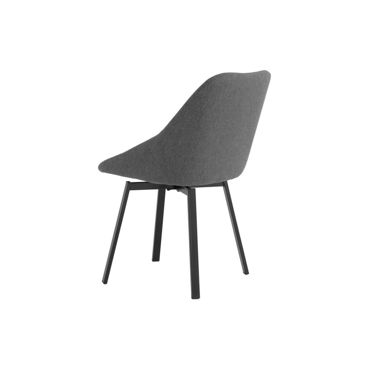 Con este precioso diseño en estilo moderno te presentamos la silla de comedor modelo Melia, una silla de la mejor calidad acompañada de un precio inmejorable. Se compone de una estructura en madera contrachapada, acolchada y rellena de espuma de 21 kg de densidad, también se encuentra tapizada en tejido color gris oscuro, aunque podrás encontrarla en más colores. Sus patas están fabricadas en acero lacado negro, una combinación de colores adaptable a todo tipo de ambientes. La cualidad más importante de la silla Melia es tu estructura giratoria de hasta 180º con retorno automático, una maravilla para tu hogar.