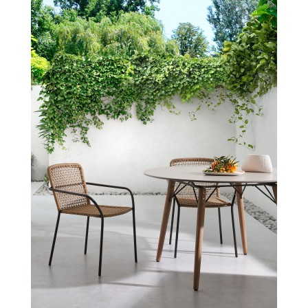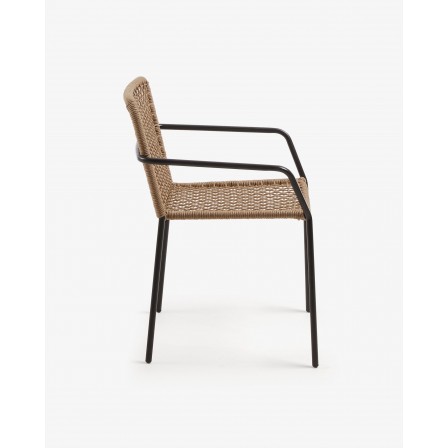 Elle se compone de una estructura en cuerda color beige trenzada a mano con la mejor calidad del mercado, también consta de unas patas y brazos fabricados en acero galvanizado color negro para una combinación de colores en tendencia. Podrás ubicarla tanto en interior, como en exterior siempre que sea bajo techo, están preparadas para un uso intensivo diario y una resistencia especial.
