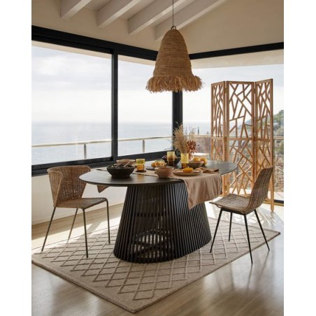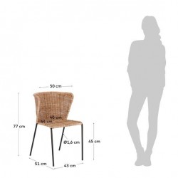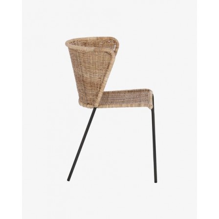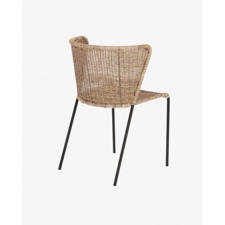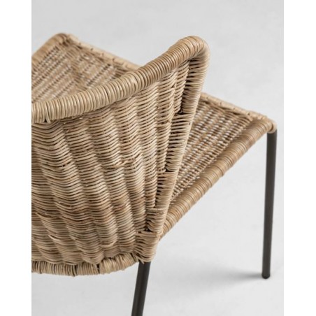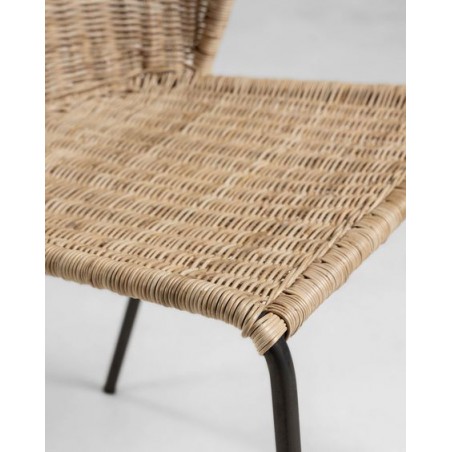 Para un exterior de diseño y calidad cuenta con la silla modelo Fante, consta de un asiento y respaldo curvado en ratán trenzado natural a mano y una estructura de cuatro patas en acero negro. Podrás adaptarla perfectamente tanto en el interior de tu hogar, como en el exterior, siempre que sea bajo techo.