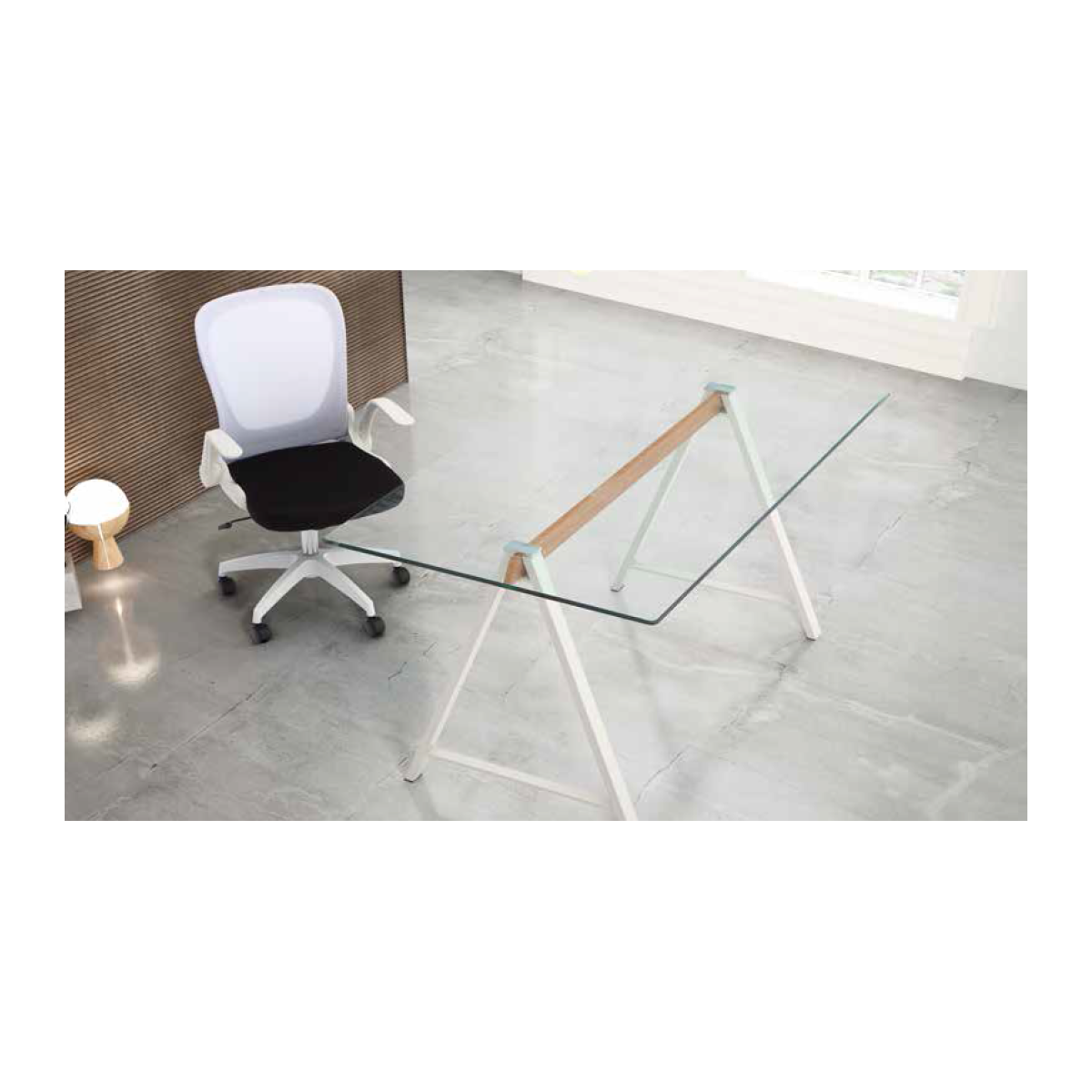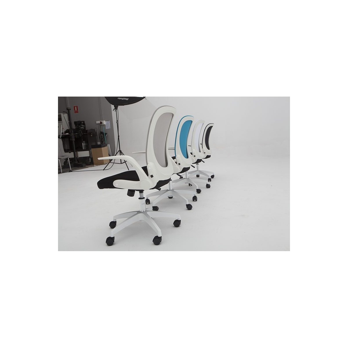 La silla de oficina modelo Londres, consta de un asiento acolchado, tapizado en tejido negro, podrás hacer varias combinaciones de colores con sus 4 tejidos Mesh disponibles. Tiene una estructura interna en madera y externa en polipropileno color blanco, brazos abatibles del mismo material y cinco ruedas.