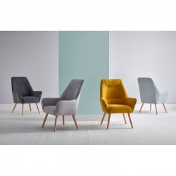 Brugue está fabricada en cuatro colores en tendencia seleccionados perfectamente para que combinen sin problema con cualquier ambiente decorativo. La butaca Brugue se compone de una estructura rellena de espuma y acolchada, tapizada en tejido de alta calidad en color gris claro, además, sus patas están ligeramente inclinadas y fabricadas en madera color natural.