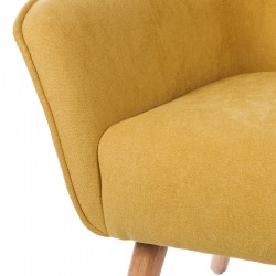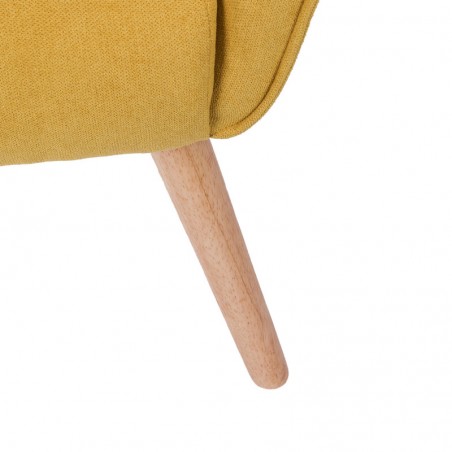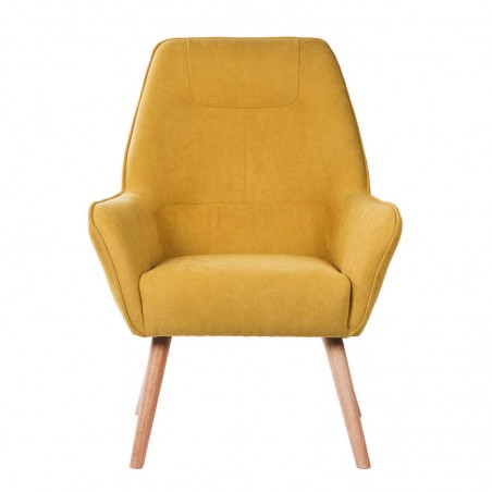 Brugue está fabricada en cuatro colores en tendencia seleccionados perfectamente para que combinen sin problema con cualquier ambiente decorativo. La butaca Brugue se compone de una estructura rellena de espuma y acolchada, tapizada en tejido de alta calidad en color mostaza, además, sus patas están ligeramente inclinadas y fabricadas en madera color natural.
