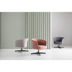 Cata es una mecedora giratoria que se compone de una estructura contrachapada y acolchada en espuma de 24 kg de densidad que proporciona un gran confort y resistencia, además, se encuentra tapizada en tejido de alta calidad en color gris claro. Consta de una base en acero lacado negro con patas en forma de estrella en el mismo material y color. Cata se adapta a tu cuerpo perfectamente gracias a su diseño en líneas curvas.