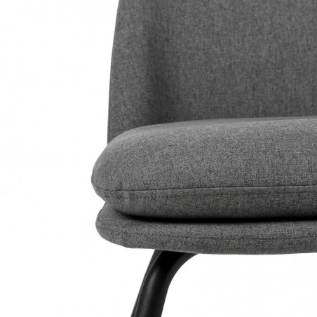 Romes se adapta a tu cuerpo y a tu postura gracias a su diseño curvo y a sus materiales de alta calidad. Se compone de unas patas ligeramente inclinadas en metal con acabado en color negro, también consta de un asiento y respaldo tapizados en poliéster color gris oscuro, un material fácil de mantener y con una resistencia absoluta. Lo mejor de Romes es el cojín de su asiento, un cojín grueso, relleno y acolchado en espuma que hará mucho más fácil tu sentada.