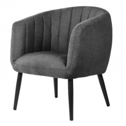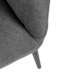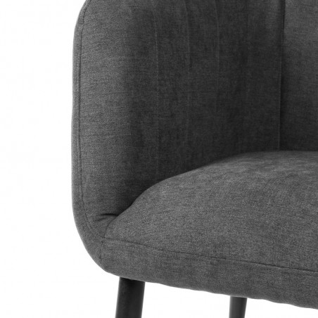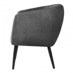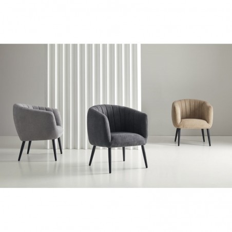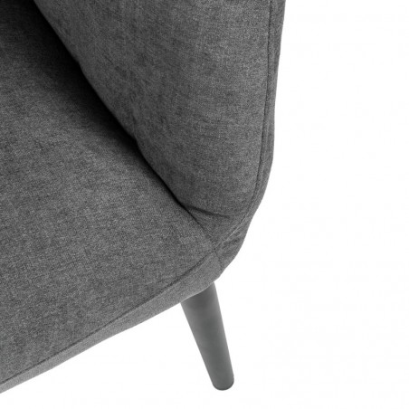Venecia es una butaca que transmite personalidad y elegancia a cualquiera de las estancias donde se ubique, se compone de una estructura rellena de espuma y acolchada, tapizada en tejido de alta calidad en color gris oscuro. Una de las cosas que más resistencia y durabilidad aportan a esta butaca son sus patas, fabricadas en metal lacado en color negro.