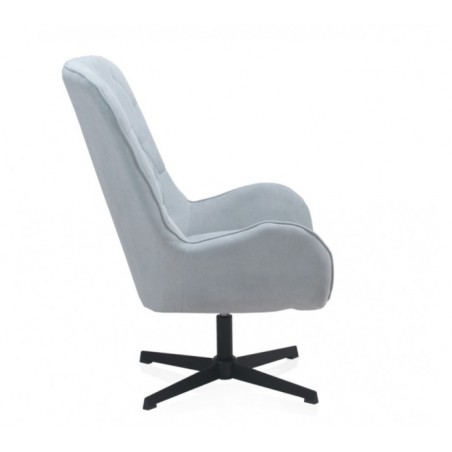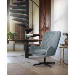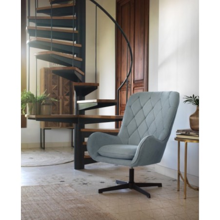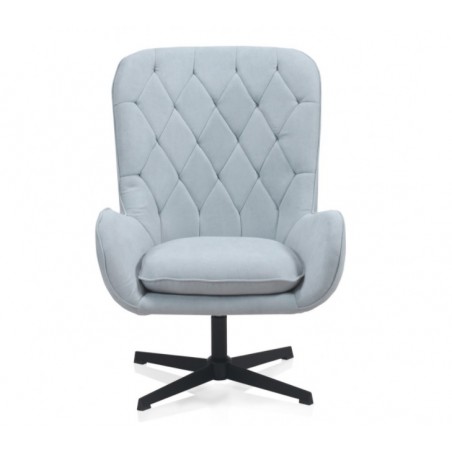 El sillón giratorio tapizado modelo BLUM patas metálicas, ideal para cualquier estancia de nuestro hogar ya que lo podemos usar como sillón en nuestro salón o cómo butaca auxiliar en nuestro dormitorio. Es un sillón de calidad perfecto para dar un toque elegante a nuestra decoración. Sus características son inigualables, totalmente acolchado, tapizado 100% poliéster color azul claro y estructura metálica color negro.