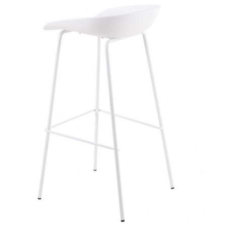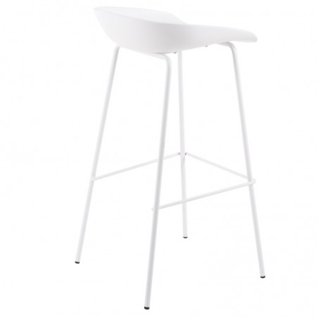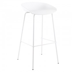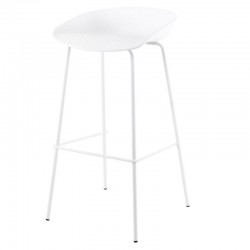 Aline se compone de un diseño muy simple, consta de un asiento fabricado en polipropileno blanco y unas patas en acero lacado en el mismo color para obtener un acabado total, también dispone de una barra metálica blanca a modo de reposapiés. Es un taburete multiusos que podrás colocar en diferentes estancias gracias a su estructura sencilla y original.