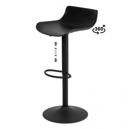 Principalmente diseñado para estilos minimalistas, os presentamos el Taburete Blake en Color Negro. Se compone de una estructura de polipropileno y una base metálica con un diseño moderno y elegante que no dejará indiferente a nadie. Un taburete giratorio y regulable en altura que se convertirá en un elemento ligero, de fácil movilidad, ideal para cocinas office modernas, barras de bar con el que crear un rincón especial en tu hogar.