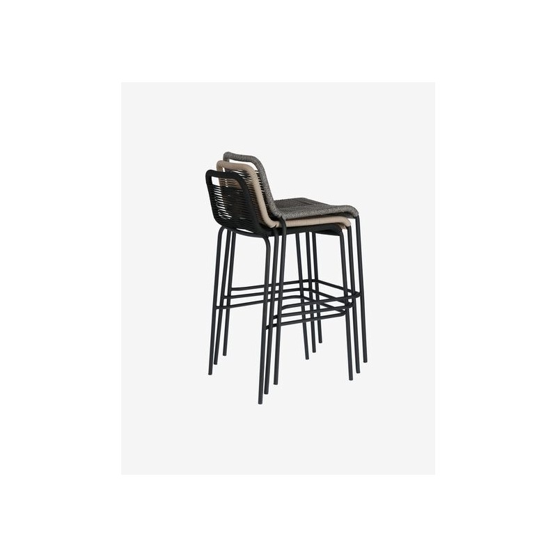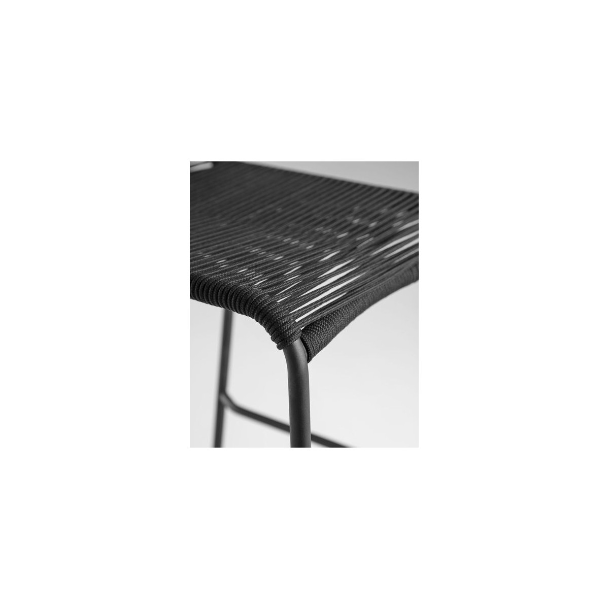 El taburete modelo Glen consta de una estructura en acero galvanizado pintado por pulverización color negro. Una de las cosas más novedosas de este taburete es su asiento y respaldo en cuerda de poliéster resistente a los rayos UV, lo que hace que puedas usarla tanto en interior como en exterior bajo techo. Una amplia colección de medidas y colores que podrás disfrutar tanto en sillas como en taburetes.