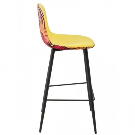 Con la silla de comedor Neit la personalidad y la innovación están aseguradas en tu hogar. Se compone de un asiento y respaldo tapizados en terciopelo color amarillo con una trasera en tejido decorado en dibujos florales combinando los colores. Neit también consta de cuatro patas cónicas fabricadas en acero con acabado en pintura epoxi color negro.