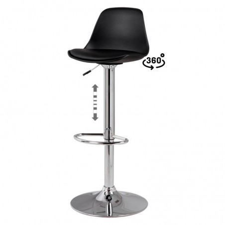Principalmente diseñado para estilos minimalistas, os presentamos el Taburete Nell en Color Negro. Se compone de un asiento en plástico polipropilenocon con el asiento acolchado PU y un soporte pies cromado, un diseño moderno y elegante que no dejará indiferente a nadie. Un taburete giratorio y regulable en altura que se convertirá en un elemento ligero, de fácil movilidad, ideal para cocinas office modernas, barras de bar con el que crear un rincón especial en tu hogar.