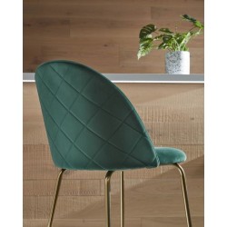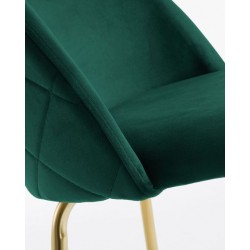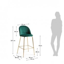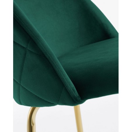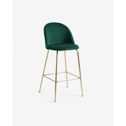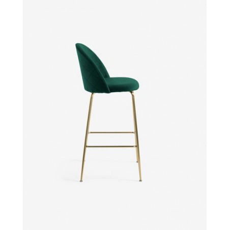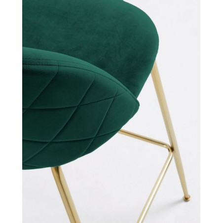 Vonne es un taburete elegante y sofisticado gracias a su diseño tapizado en terciopelo color verde y con respaldo trasero dibujado en rombos. Consta de una estructura contrachapada de bajas emisiones E0 para un mayor cuidado con el medioambiente, rellena de espuma y tapizada en terciopelo de la mejor calidad. Ivonne también está compuesto de cuatro patas fabricadas en acero lacado dorado que proporciona resistencia y durabilidad al producto.
