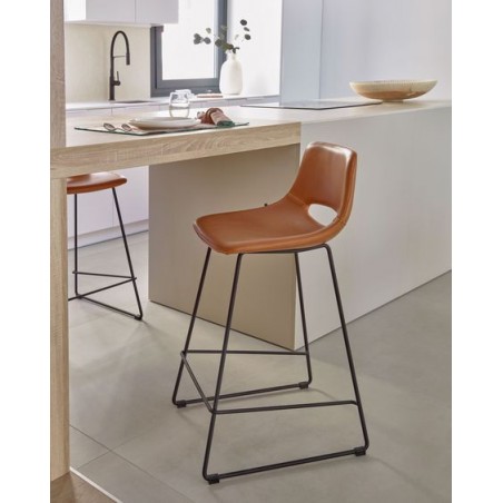 0 manchas, 0 dramas, este es el lema del taburete modelo Zara , que además de tener un diseño espectacular y en tendencia hace tu vida mucho más fácil a la hora de darle un uso diario. Se compone de una estructura en acero resistente lacado en color negro y un asiento y respaldo acolchados en espuma y tapizados en polipiel color marrón. Este es uno de esos tapizados que todos queremos para nuestro hogar, fácil de limpiar, resistente a los líquidos y altamente decorativo.