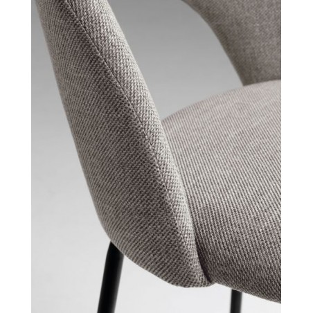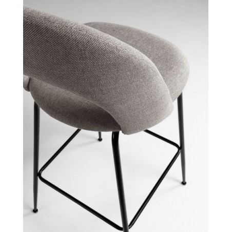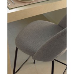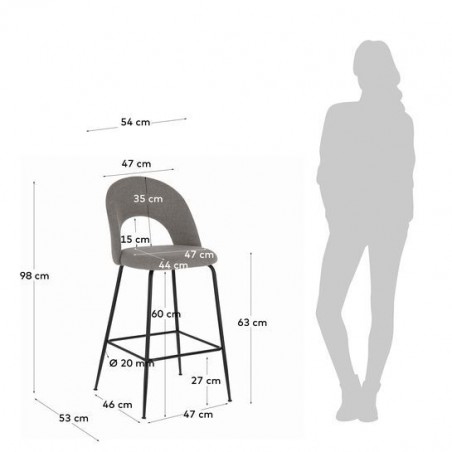 El taburete modelo Malia consta de cuatro patas en acero lacado negro de alta calidad y un asiento y respaldo acolchado en espuma y tapizado en tejido gris claro. Este modelo de taburete es uno de los que todos queremos para nuestro hogar por su tejido antimanchas, que se te caiga el café o el vino ya no será un drama gracias a su tela, evita que los líquidos se filtren y es súper fácil de limpiar con tan solo un poco de agua y dejándolo secar.