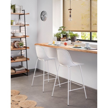 La colección de sillas y taburetes modelo King tiene un diseño polivalente y versátil, en este caso te presentamos el taburete King, con asiento y respaldo fabricados en plástico reciclable color blanco y una estructura en acero lacado en el mismo color. Crea preciosos conjuntos con los artículos de esta colección y consigue la decoración que tanto buscas.