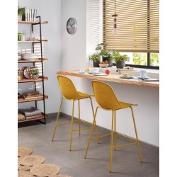 La colección de sillas y taburetes modelo King tiene un diseño polivalente y versátil, en este caso te presentamos el taburete King, con asiento y respaldo fabricados en plástico reciclable color mostaza y una estructura en acero lacado en el mismo color. Crea preciosos conjuntos con los artículos de esta colección y consigue la decoración que tanto buscas.