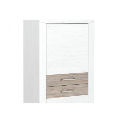 Malva es una colección de artículos con los que podrás crear preciosos conjuntos para tu salón-comedor. En este caso te presentamos el módulo alto, su estructura está completamente fabricada en melamina de alta calidad combinando colores como el gris nórdico y el blanco. Malva se compone de dos cajones y dos estantes interiores para un amplio almacenaje. Todo esto lleva tiradores metálicos.