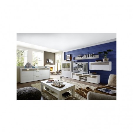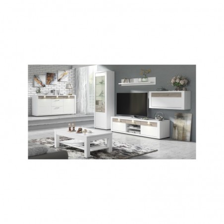 Malva es una colección de artículos con los que podrás crear preciosos conjuntos para tu salón-comedor. En este caso te presentamos el módulo de pared, su estructura está completamente fabricada en melamina de alta calidad combinando colores como el gris nórdico y el blanco. Se compone de una puerta con tirador metálico.